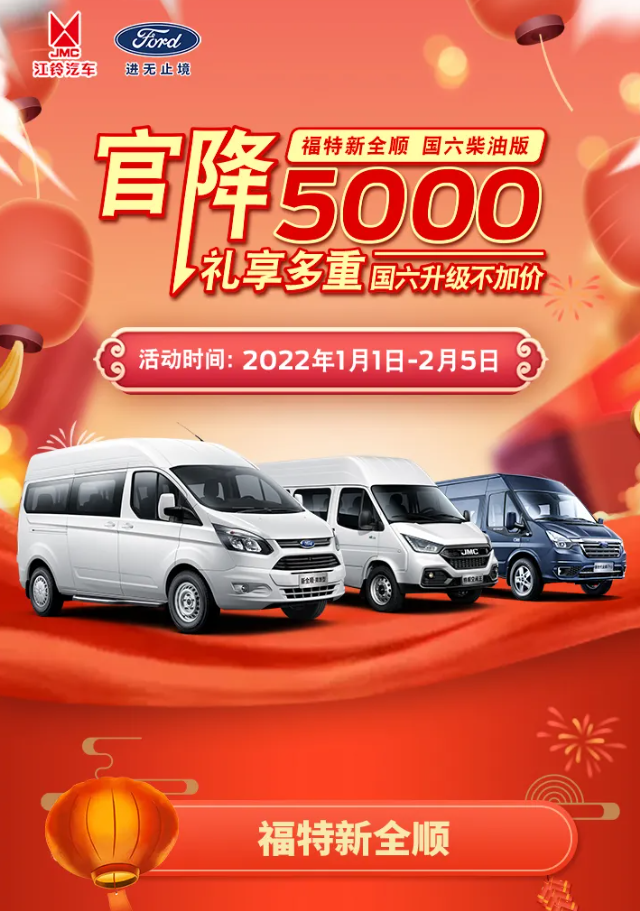 聽,突突突~新年的**班列車,好運號2022已進站請各位幸運兒排隊上車并速來領取您的開年大禮包江鈴福特商用車為您精心準備的開年禮遇多重優(yōu)惠,高達萬元新年創(chuàng)造新里程,一路看盡好風景!愿2022所念皆如愿,所行皆坦途